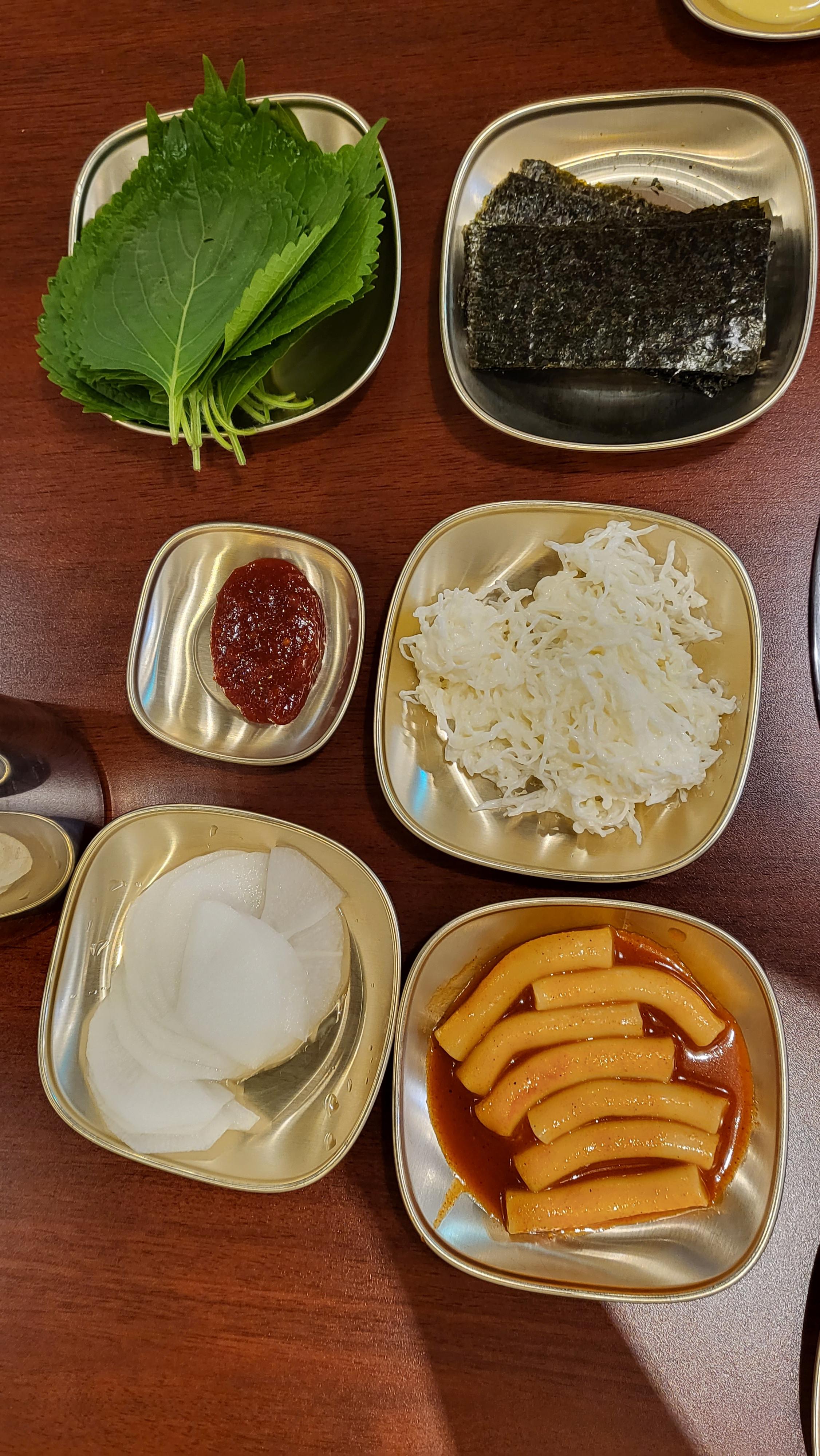 갖가지 밑반찬들이 깔끔하게 세팅이 됩니다.