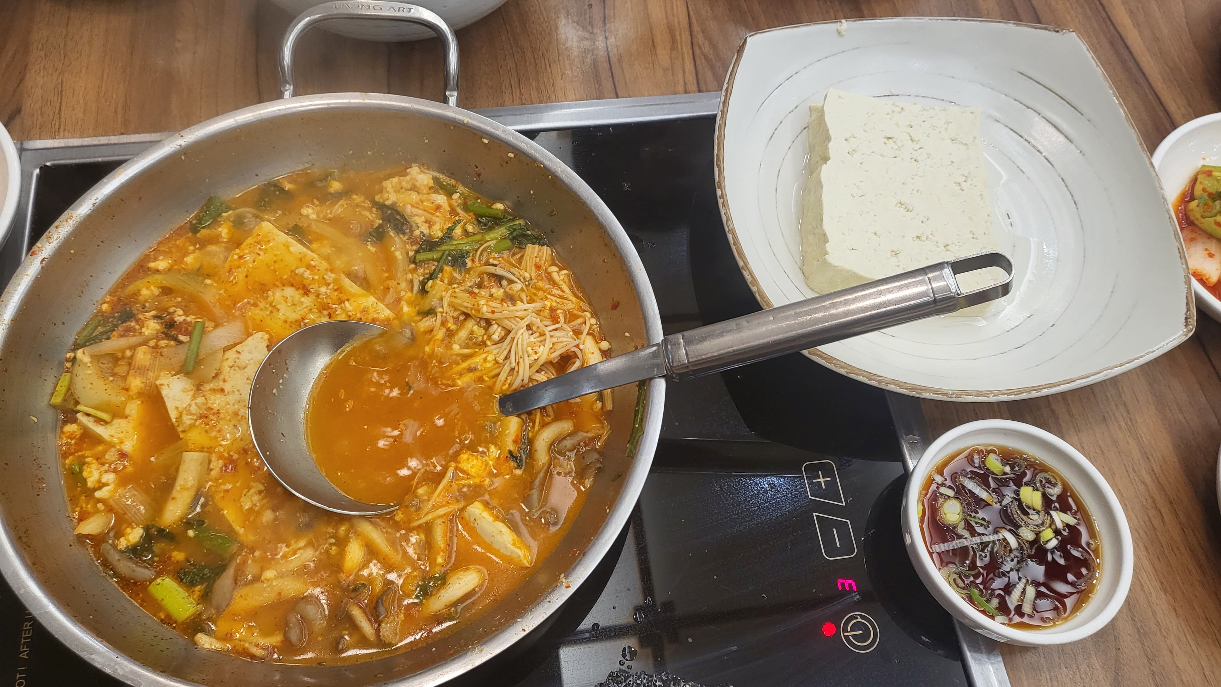 지나가다 발길이 멈춘곳은 초당두부 본점이라는 곳인데 들어가니 우리가 마지막 손님이라며 생선구이는 안되고 두부전골과 초당 순두부만 시킬 수 있다며 순두무 2개 전골 2개를 시키면 될것 같다며 주인아주머니게서 친절하게 말씀해 주셔서 편하게 앉아서 기다리며 먹을 수 있었다.