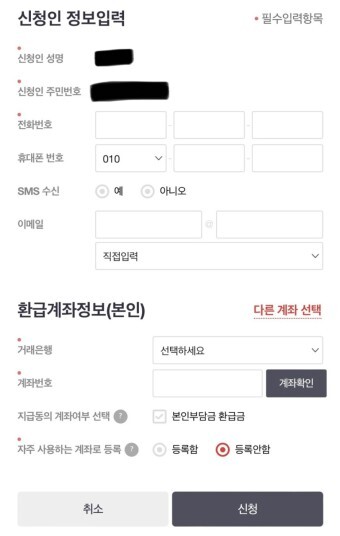 또한 추가로 본인 부담금이 발생한 경우에는 처음 신청하셨던 은행 계좌로 입금될 수도 있으니 처음 신청하신 은행계좌로 입금을 원하지 않는 경우 해당 지사로 알려 주시면 됩니다.